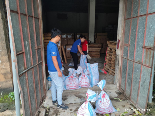 來到省農資集團倉庫區域,李紅衛總經理要求省農資集團現場負責人做好庫房物資的堆放及庫房大門的加固工作,強調臺風期間停止一切物資運輸等相關生產作業,現場,省農資集團安排人員準備沙袋加固倉庫大門并用貨車頂住庫房大門。