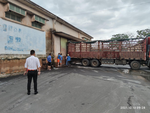 利用卡車加固省農資集團倉庫大門