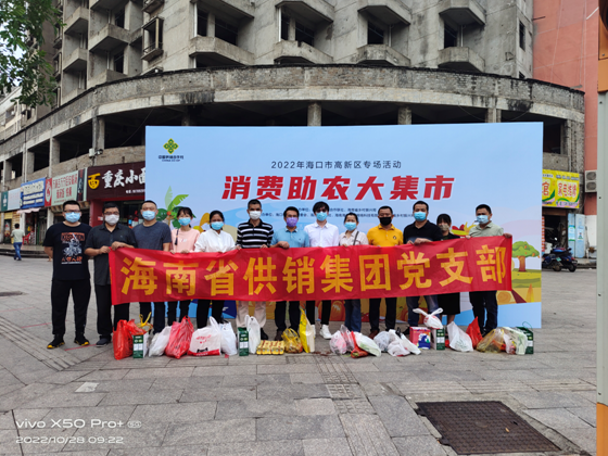 2022年10月28日上午,省供銷集團黨支部開展“消費助農”主題黨日活動,省供銷集團黨支部組織黨員干部職工參加海南省供銷合作聯社聯合海口市供銷合作社在海口高新區科技大道旁農貿市場處舉辦的消費助農大集市活動。省供銷集團黨支部黨員干部職工一到消費助農大集市活動現場就開始爭相購買,活動現場有大米、魚肉丸、牛肉干、豬肉、雞蛋、粽子、茶葉、水果、蔬菜等眾多農副產品,他們用實際行動為消費助農獻份愛心,現場購買助農產品共計2204.3元。