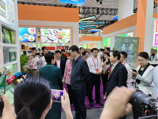 中華全國供銷合作總社黨組成員、監事會主任蔡振紅到海南省供銷集團展館聽取工作人員介紹展品情況