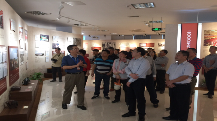 圖3:省供銷合作社黨員干部職工認真聆聽劉玉峰館長講解
