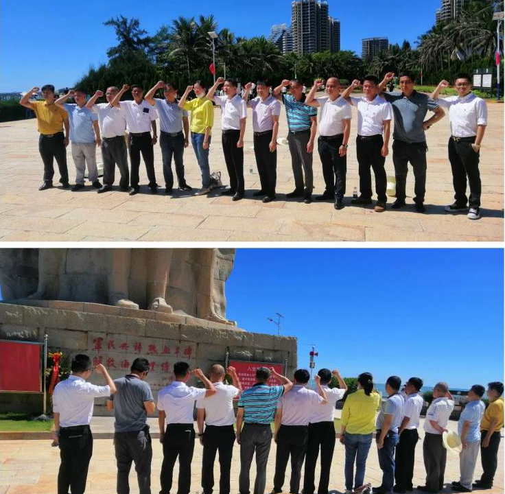 隨后,全體黨員在高高矗立的解放海南紀念塑像——熱血豐碑前,面對鮮紅的黨旗。在黨總支部書記吳啟俊同志的帶領下,全體黨員舉起右臂,莊嚴宣誓:“我志愿加入中國共產黨,擁護黨的綱領……”。在場的每一位黨員再次接受紅色洗禮,許下為共產主義事業奮斗終身的錚錚誓言,黨員們的愛黨情懷、奮斗精神得到了進一步的激發。